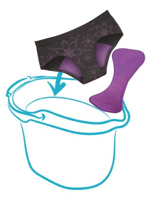 With soaking: To prevent stains, place a container of soapy cold water in the bathroom and soak the used protections in it. Refresh the water daily for a maximum of two days. You can also add sodium percarbonate or Öko-Capsules to enhance effectiveness.