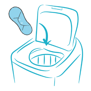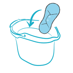 With soaking: To prevent stains, place a container of cold, soapy water in the bathroom and place the used protectors in it. Renew the water daily for a maximum of two days. You can also add sodium percarbonate or Öko-Capsules to improve effectiveness.