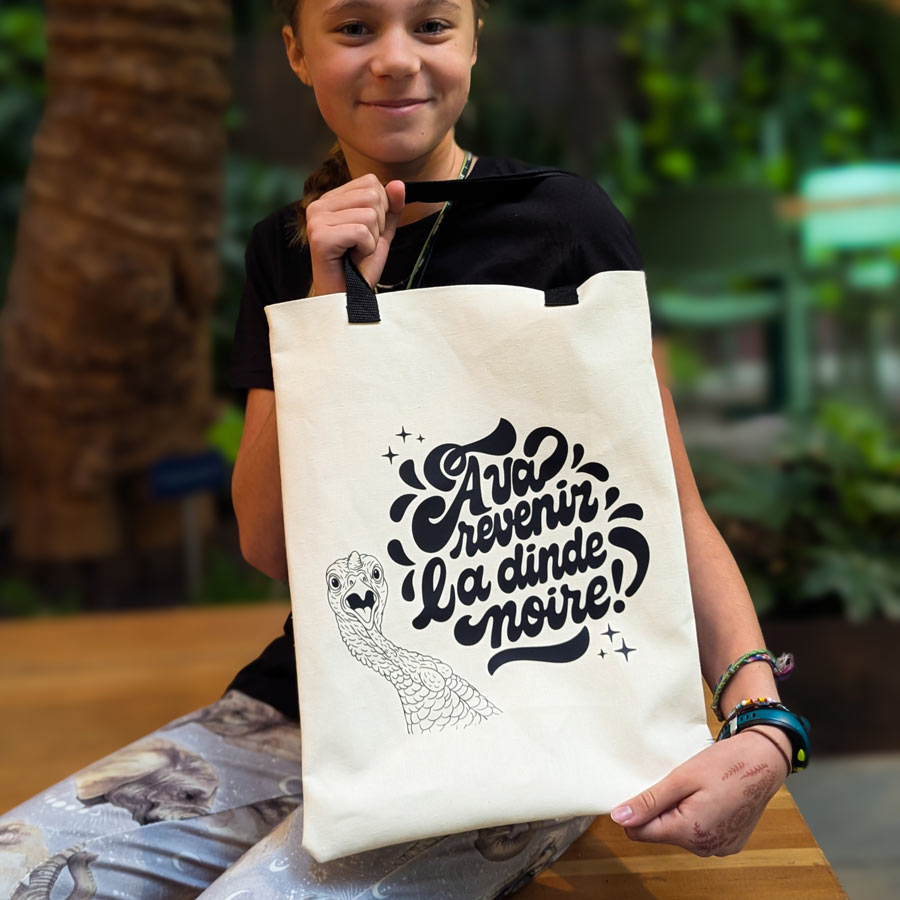 The “À Vas Revenir La Dinde Noire!” bag pays tribute to one of the iconic lines from a legendary viral video in Québec. In this surreal interview, a frustrated citizen gets worked up about a mysterious “black turkey” that, according to her, “will be back.” Since then, the quote has proudly joined the pantheon of Québec inside jokes we pull out among friends just for a good laugh.