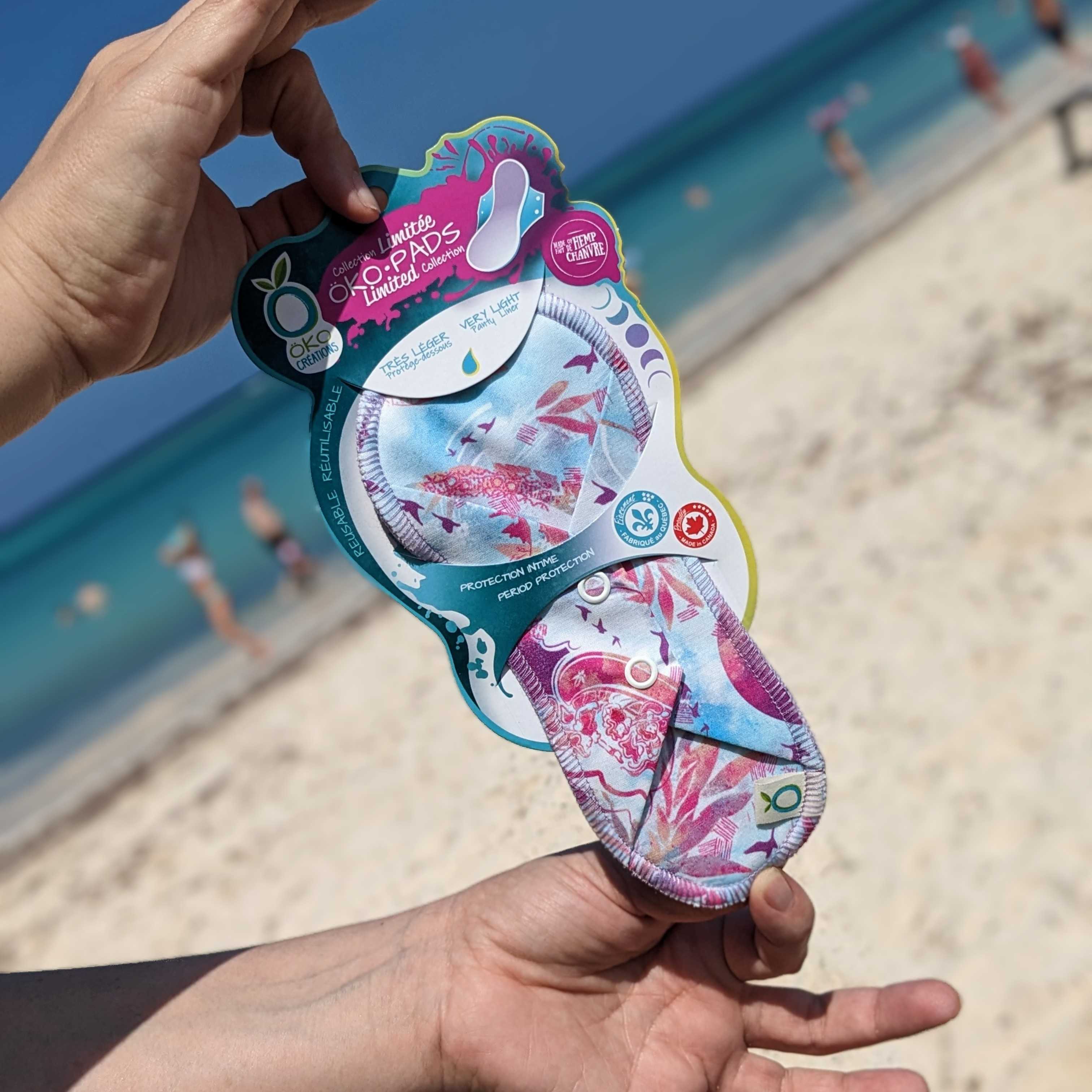 A. The fabric in contact with the underwear is made of cotton, a non-slip material (unlike PUL, which is sometimes used in the manufacture of other brands of reusable pads). If, despite everything, you feel that your pad is moving, we suggest that you wear tight-fitting cotton underwear and avoid those made from slippery materials (satin, nylon, etc.) with your Öko-pads.